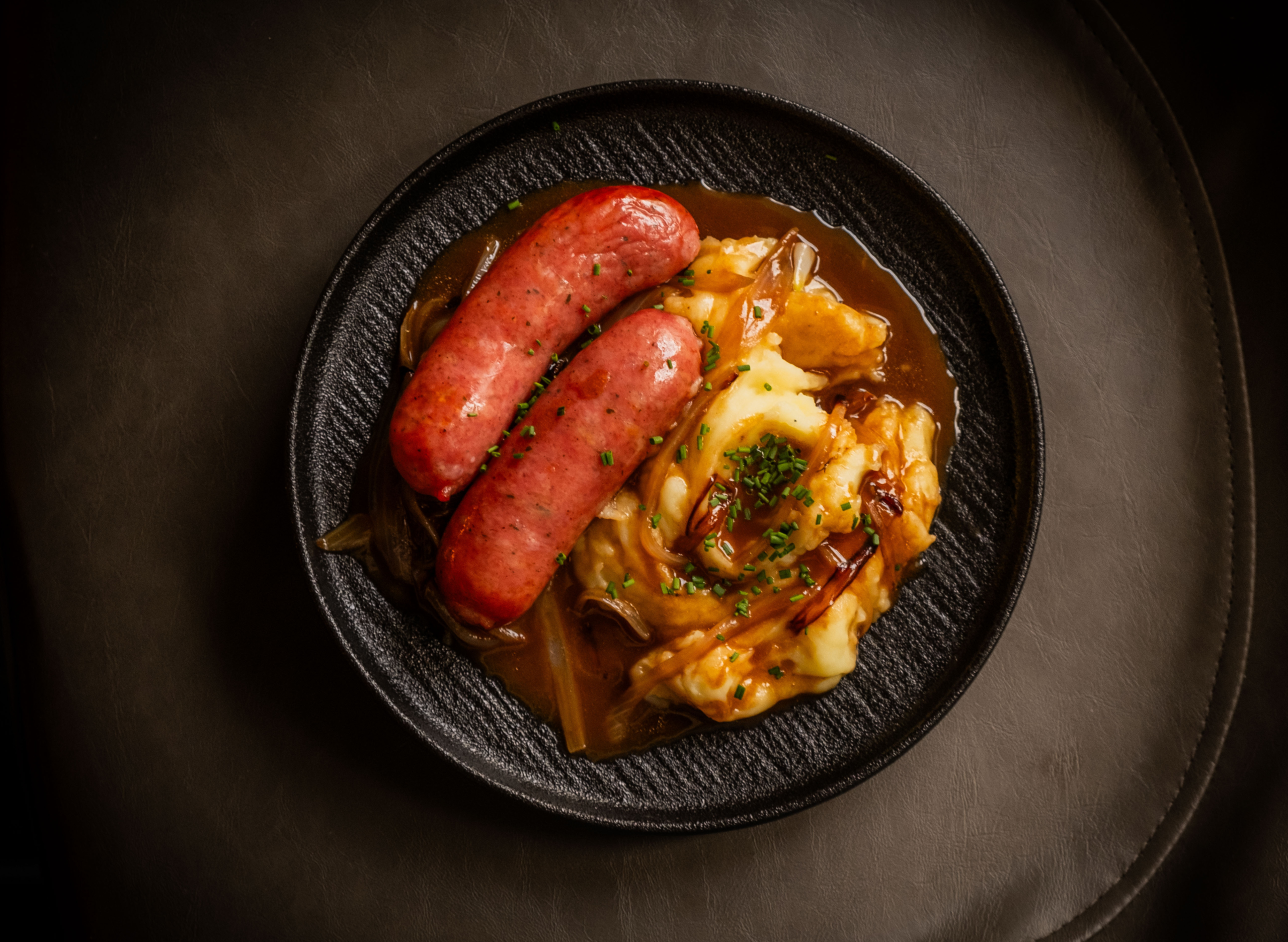 mashed potato, bratwurst sausages | onion gravy, veal jus