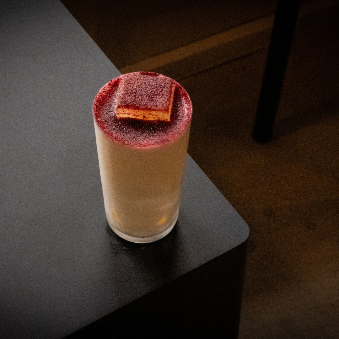 jim beam infused neroli flowers, heavy cream, chamomile syrup, citrus, egg white, co2, orange | hibiscus, orange powder