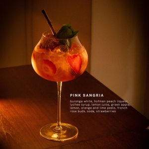 – 2 beverages per couple: Choice of Pink Sangria & First Love cocktail
